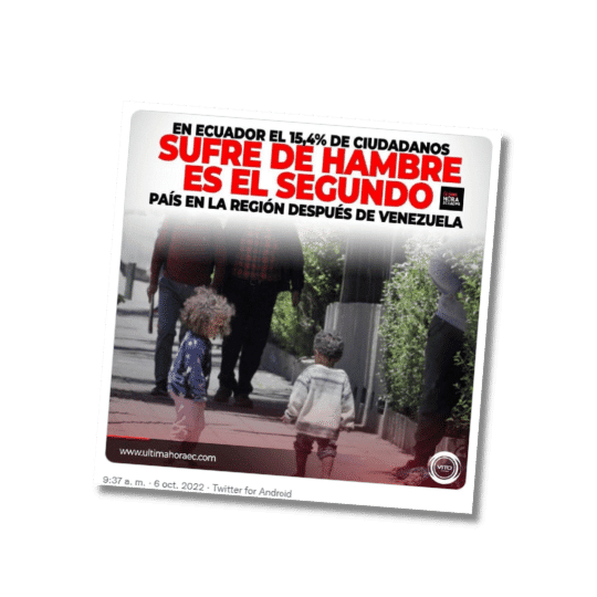 FAO taripaypika Ecuadormi America llaktakunamantaka ishkaynikipi kan. Venezuela washapimi kna, 22,9% runakuna yarkaymanta llakipi kan.