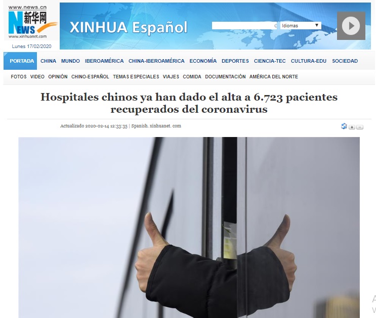 La agencia oficial de noticias China, Xinhua, reportó hasta el 14 de febrero 6.723 pacientes recuperados de la infección del COVID 19. De acuerdo a la Comisión Nacional de Salud China, fueron dados de alta de diferentes hospitales.