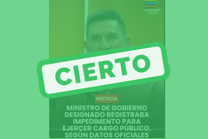 La verificación realizada por Ecuador Chequea consistió en una revisión manual de la plataforma estatal, lo que permitió corroborar la existencia del impedimento.