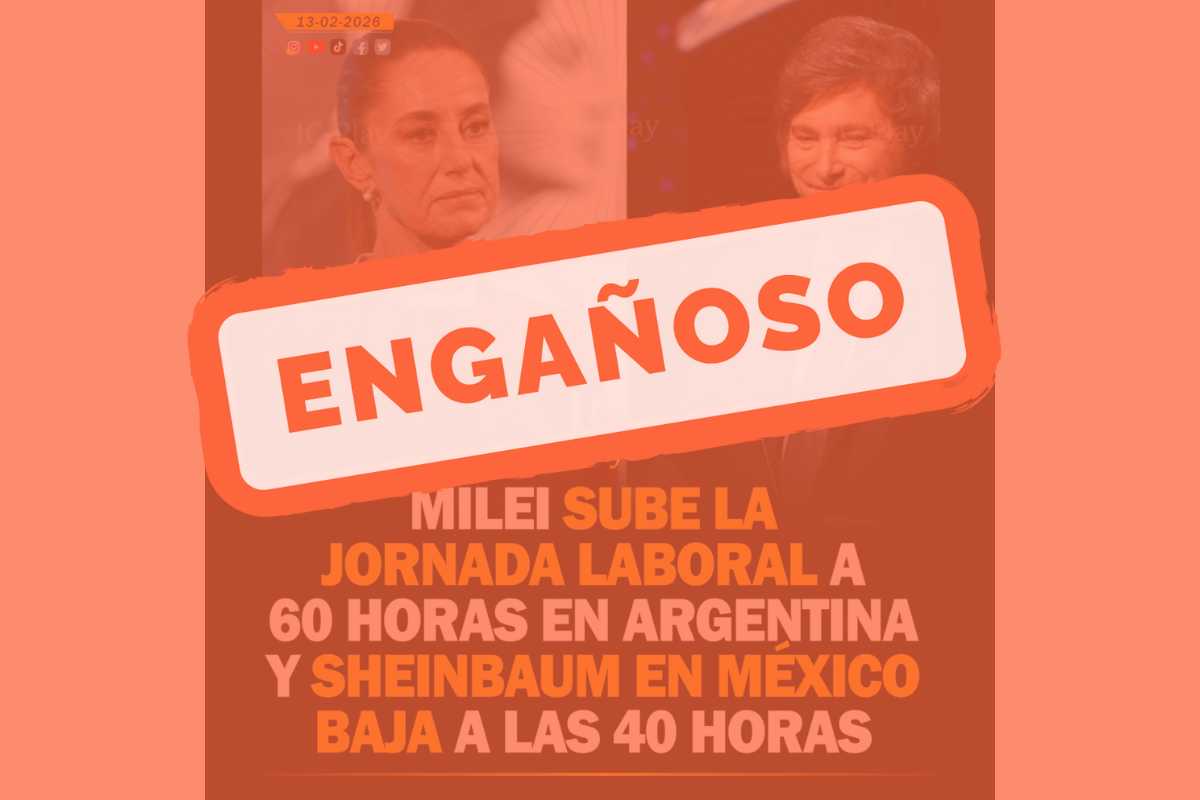 • Qué verificamos: Un post que asegura que “Milei sube la jornada laboral a 60 horas en Argentina y Sheinbaum en México baja a las 40 horas”.