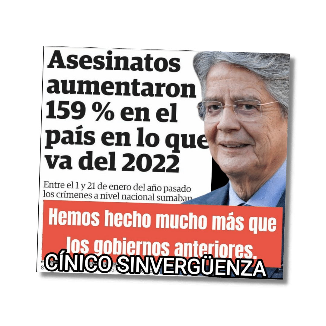 El país atraviesa una ola de inseguridad, sicariatos y homicidios que cada vez se intensifican. Este fin de semana se produjo una explosión en un barrio ubicado en el suroeste de Guayaquil, conocido como la Calle 8. El atentado dejó como resultado cinco fallecidos y 17 heridos. Una publicación en Facebook señala que los asesinatos aumentaron 159% en el país, en lo que va de 2022. En la imagen se observa una fotografía del Presidente, Guillermo Lasso, y un texto que dice: “Hemos hecho más que los gobiernos anteriores”. La información es engañosa.