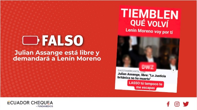 Desde una cuenta de Facebook se difundió desde este 6 de diciembre que Julian Assange está libre y se asegura que el fundador de Wikileaks actuará legalmente contra el expresidente Lenín Moreno. La información es falsa, porque Assange sigue detenido en la prisión de Belmarsh, en el sureste de Londres y no se han registrado declaraciones recientes donde Assange se haya referido al expresidente ecuatoriano.