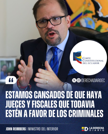 Una publicación difundida en X atribuye al ministro del Interior, John Reimberg, la frase “estamos cansados de que haya jueces y fiscales que todavía estén a favor de los criminales”, acompañada del logo de la Corte Constitucional.