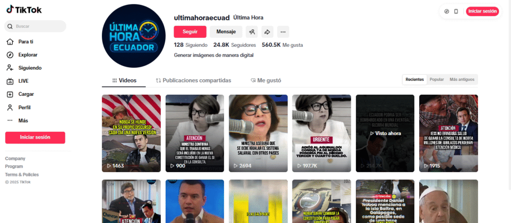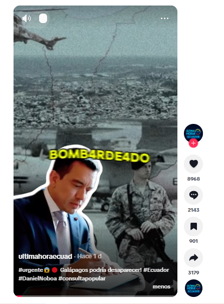 En TikTok, desde la cuenta @ultimahoraecuador. El contenido tiene más de 214.700 visualizaciones y ha sido compartido más de mil veces. Sin embargo, no presenta ninguna evidencia de lo que asegura.