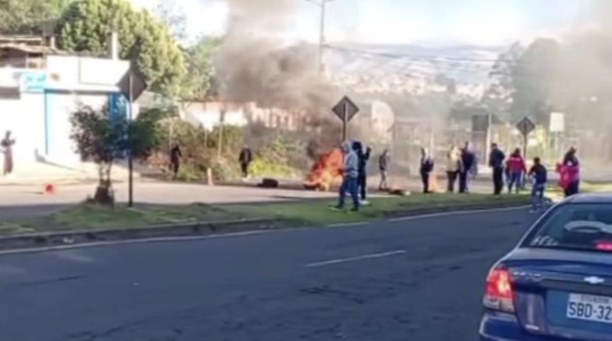 La vía Tabacundo–Cajas también registra bloqueo por manifestantes.