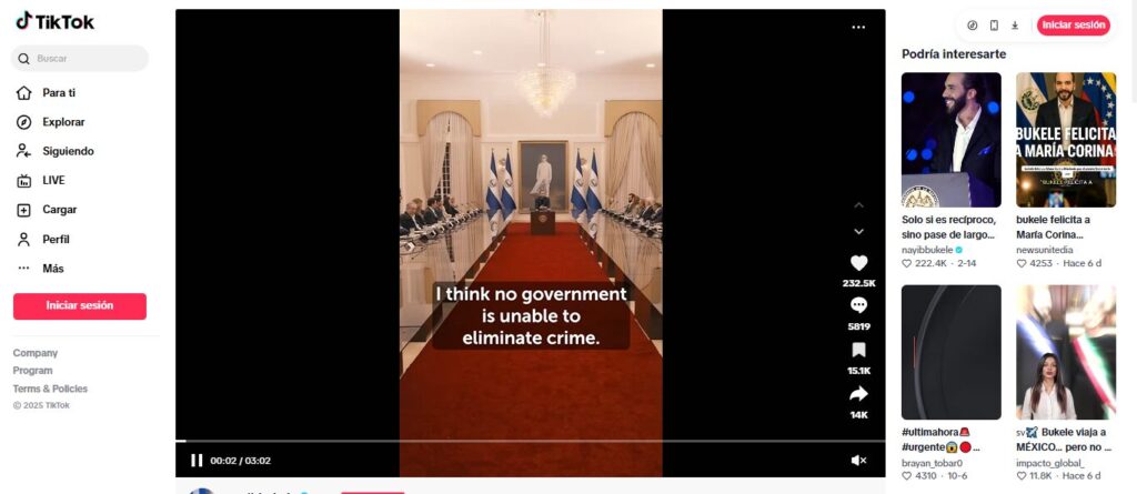 - Cuenta oficial de Nayib Bukele en TikTok: https://www.tiktok.com/@nayibbukele/video/7484448922027478289