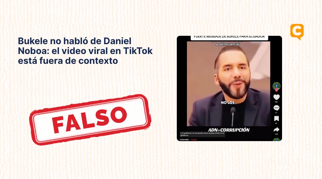 Un clip que circula en TikTok usa un fragmento de una intervención del presidente salvadoreño para hacerlo parecer una crítica directa a Daniel Noboa. En el video original no se menciona a Ecuador ni al mandatario ecuatoriano.