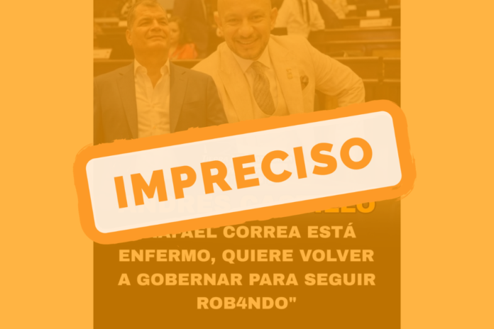 La publicación es imprecisa porque atribuye a Andrés Castillo una afirmación directa y exclusiva contra Rafael Correa que no corresponde al sentido completo de sus declaraciones. Si bien el asambleísta menciona al expresidente en su intervención, las expresiones sobre estar “enfermos” y “querer regresar para seguir robando” están dirigidas a la izquierda como grupo político.