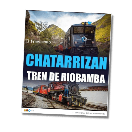 En la red social Facebook, circula una imagen en la que asegura que chatarrizarán el tren de Riobamba. Está información es engañosa.