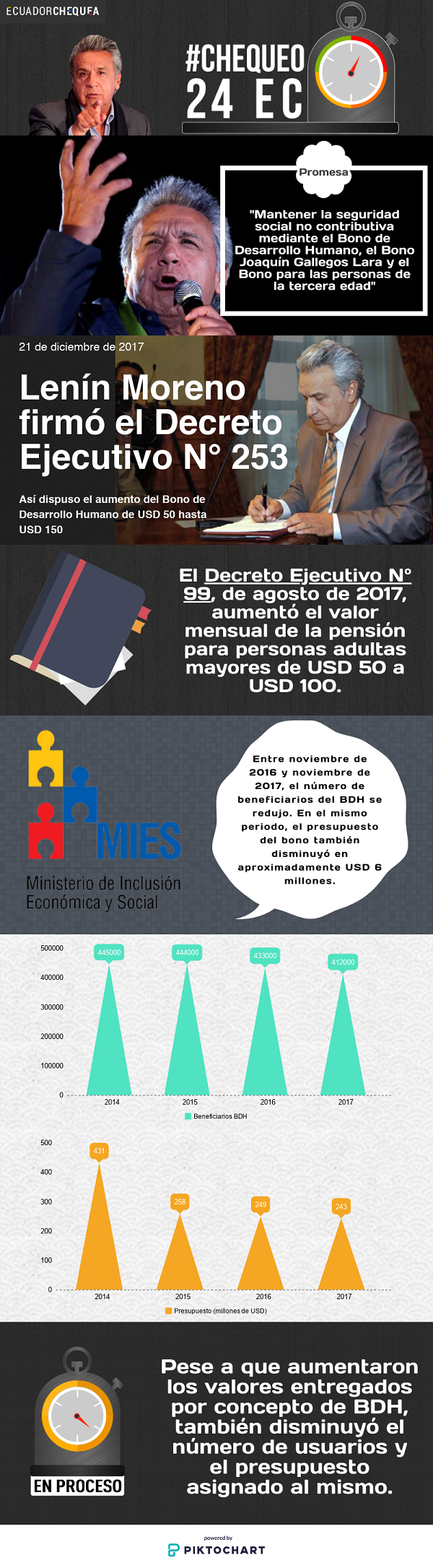 #Chequeo24EC: El Bono de Desarrollo Humano aumentó, pero hay menos beneficiarios