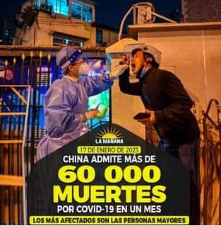 Según la Comisión Nacional Sanitaria de China, entre el 8 de diciembre del 2022 y el 12 de enero del 2023, se registraron un total 59.938 muertes por el Covid-19 en ese país. Hay que recordar que en los primeros días de diciembre del 2022 las autoridades chinas empezaron a relajar las restricciones que mantenían contra la pandemia.