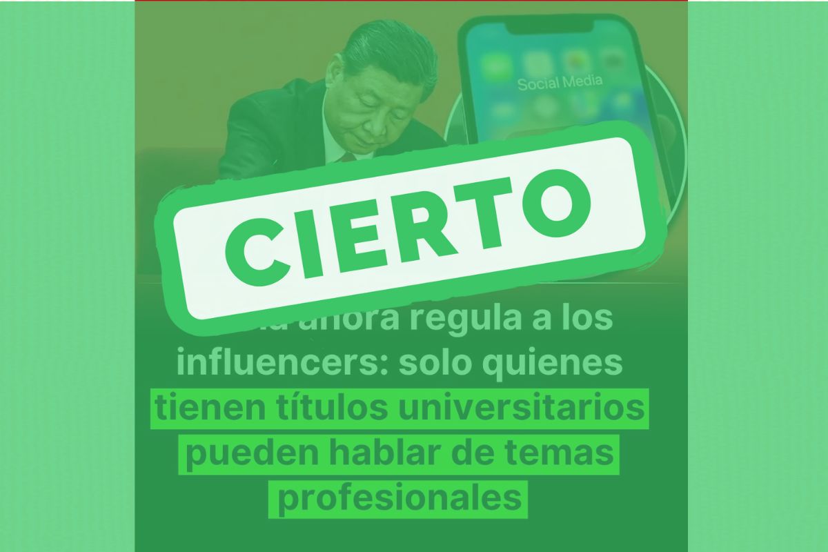 - Qué verificamos: Una publicación viral sobre una supuesta exigencia del gobierno chino a los influencers para tener título universitario si opinan sobre temas especializados.