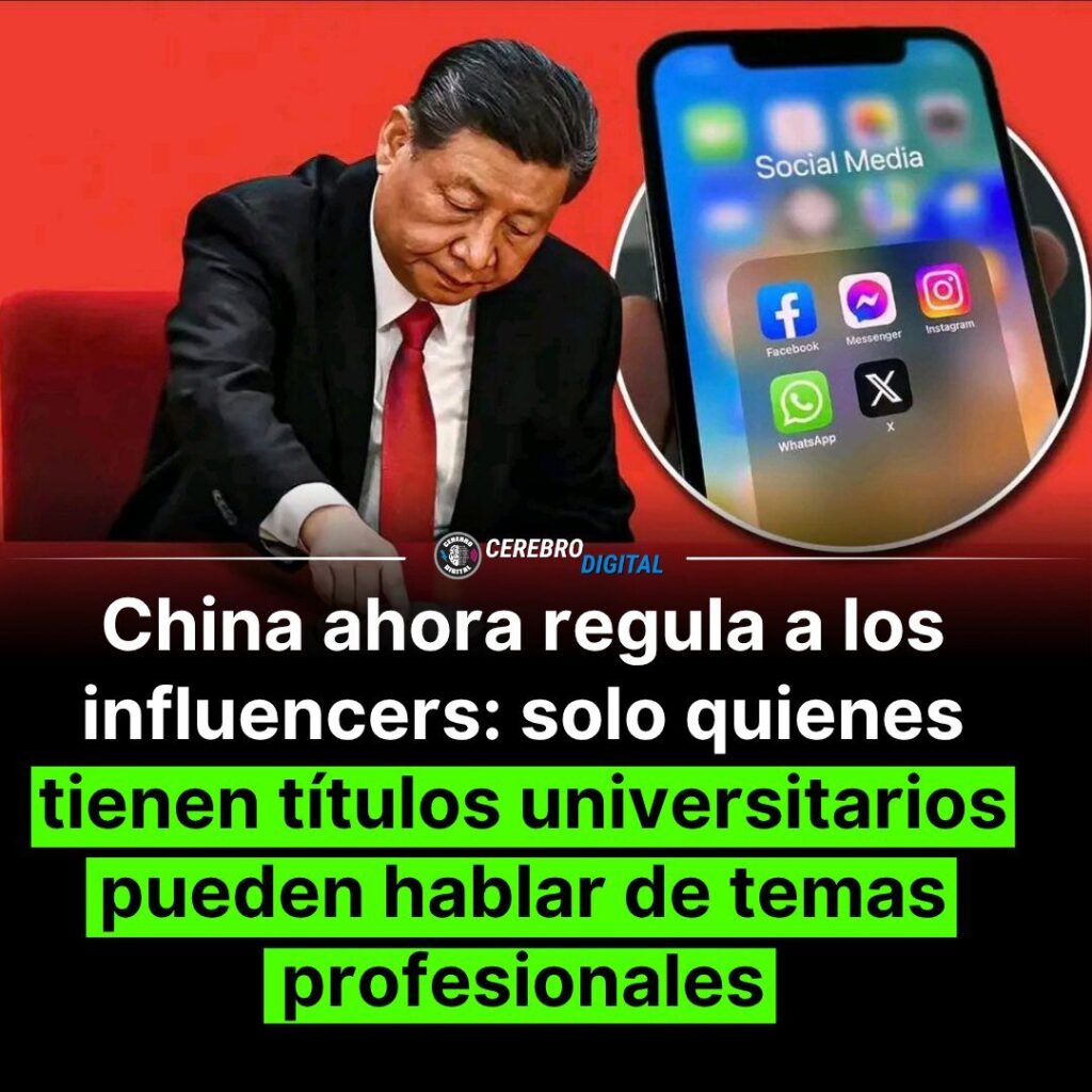 Circula una publicación en Facebook atribuida a la página verificada de “Cerebro Digital”. El texto afirma que, desde octubre de 2025, China exige títulos universitarios a los influencers que traten temas especializados y que las plataformas digitales deben verificar las credenciales académicas antes de permitir publicaciones relacionadas con medicina, derecho, educación o finanzas.