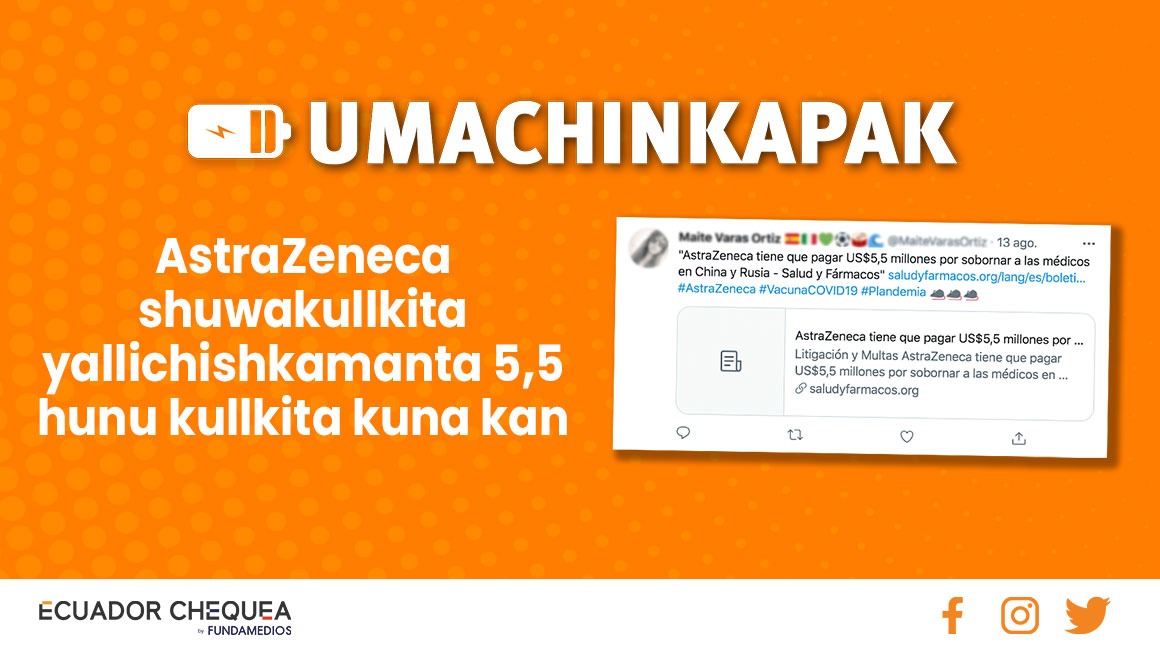 13 karway killapi twitterpi willayta llukchirka AstraZeneca 5,5 hunu kullkita kunakan CHinamanta shinallatak Rusiamanta hampikkunaman kullkita yallichishkamanta. Chayka umachinkapak willaymi kan. Astrazeneca 5, 5 hunu kullkita wanachimanta (multa) kuna karka Chinamanta, Rusiamanta hampikkunaman shinallatak pushakkunamanpash kullkita yallichishkamanta, shinapash chayka 2016 watapimi karka.