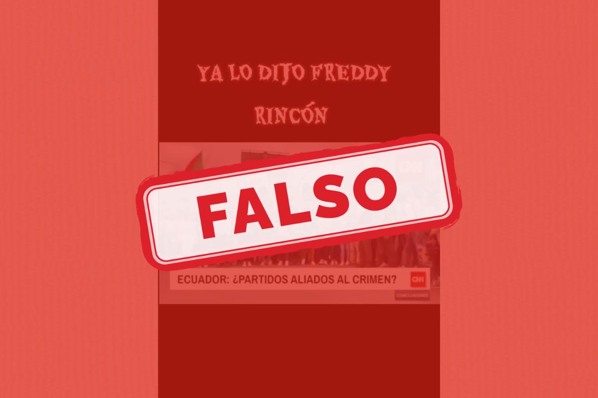 La pieza fue publicada en TikTok y otras plataformas con mensajes que aseguran que CNN informó sobre un supuesto vínculo entre el movimiento Revolución Ciudadana y el crimen organizado. Sin embargo, el programa original de Conclusiones no contiene ese segmento ni esa afirmación. El video utiliza una imagen auténtica del presentador, pero la frase fue sacada de contexto y atribuida falsamente a la cadena. El contenido vuelve a circular como parte de una estrategia de desinformación en el contexto electoral ecuatoriano.
