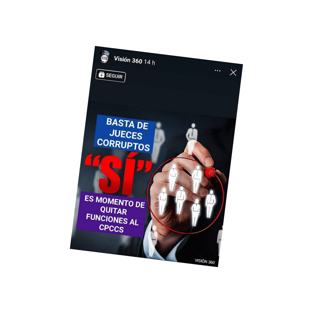 En redes sociales circula un contenido que asegura que si se vota por el Sí en la Consulta Popular ya no existirán los jueces corruptos, porque con ello se quita funciones al Consejo de Participación Ciudadana y Control Social (Cpccs). Calificamos la información como falsa, pues es el Consejo de la Judicatura quien designa a los jueces.
