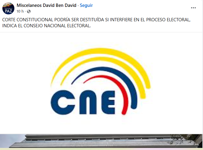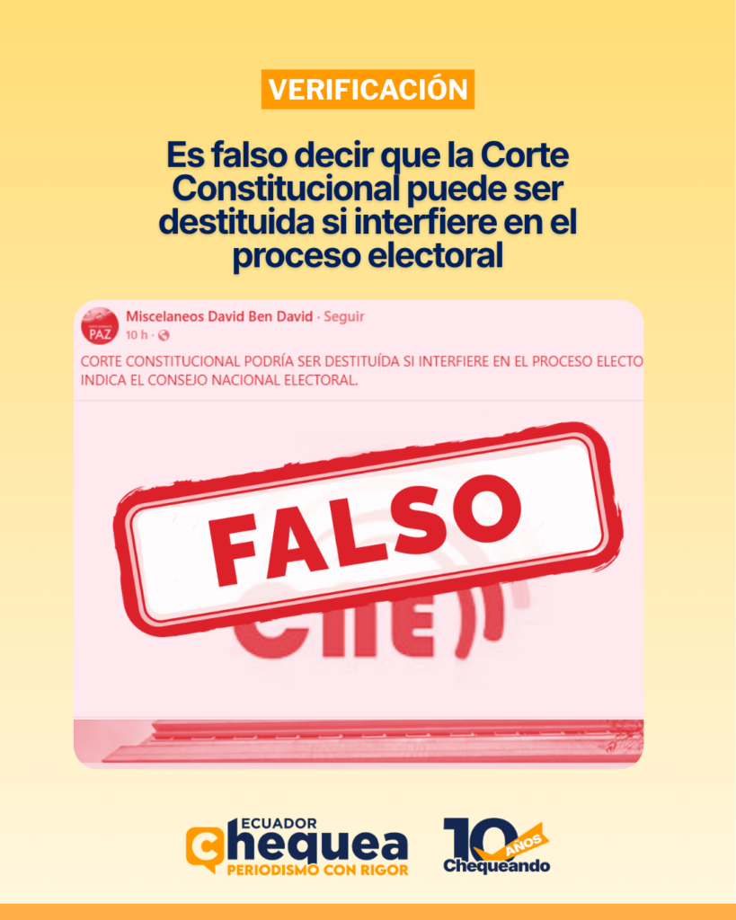 Por ejemplo, una publicación en Facebook, asegura: «La Corte Constitucional puede ser destituida si interfiere en el proceso electoral”, sin embargo esto es falso.