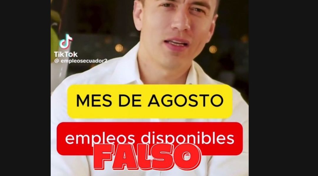 Y en días recientes, el presidente, Daniel Noboa, aparece en un falso anuncio de una plataforma de empleos que pide a la gente ingresar a un enlace malicioso. Lo curioso es que, pese a que el contenido ya fue reportado como falso, Facebook aún no lo elimina.