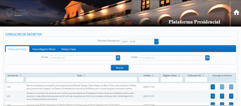 - Presidencia de la República del Ecuador: https://www.presidencia.gob.ec/