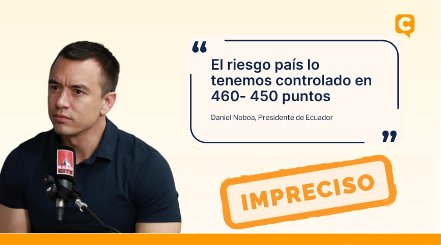 Es impreciso afirmar que el riesgo país de Ecuador se encuentra en 460 o 450 puntos. Hasta el 19 de febrero, según la estadística del Banco Central, un día antes de la entrevista, el indicador se ubicó en 467 puntos. La última vez que alcanzó los 460 puntos fue el 5 de enero.