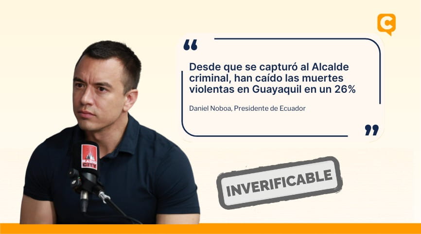 El presidente Daniel Noboa afirmó que, desde la detención del alcalde de Guayaquil, las muertes violentas cayeron un 26% en la ciudad. Sin embargo, los datos oficiales disponibles no permiten comprobar esa cifra, ya que el Ministerio del Interior aún no publica estadísticas de febrero de 2026.
