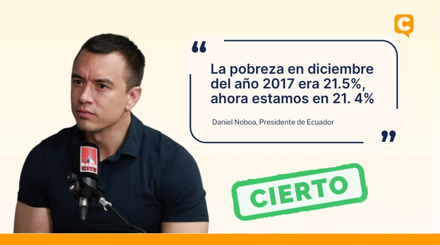 Es cierto decir que, en diciembre de 2017, la pobreza por ingresos se situaba en 21,5% y que, según los resultados de la ENEMDU, en diciembre de 2025 este indicador alcanzó 21,4% a nivel nacional.