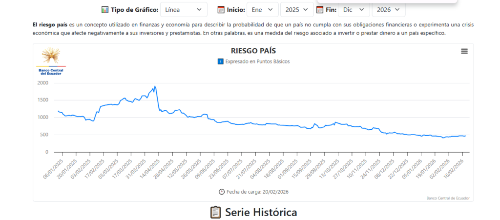 –       Banco Central del Ecuador – Indicador de Riesgo País: https://www.bce.fin.ec/estadisticas-economicas/