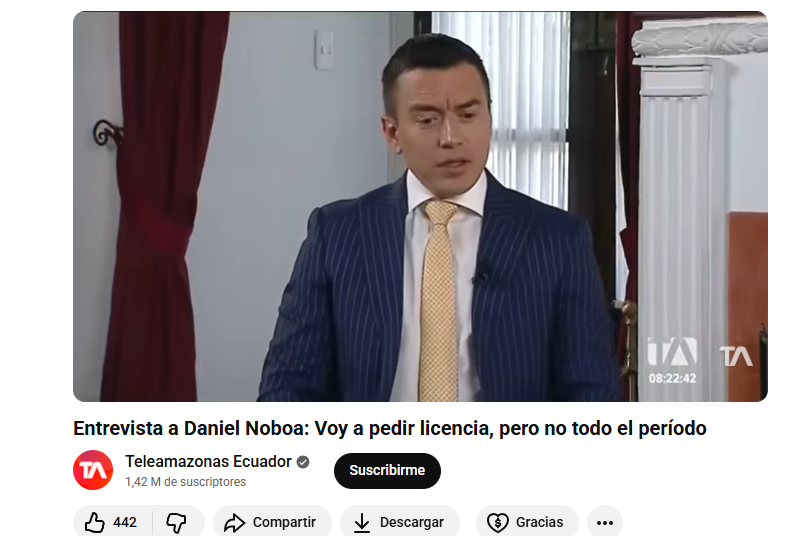 Entrevista de Daniel Noboa en Teleamazonas: video oficial en YouTube: https://www.youtube.com/watch?v=sGUC7nMGvN4&t=610s