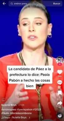 En una publicación de Tiktok se asegura que la candidata a la Prefectura de Pichincha, Daniela Zambrano —auspiciada por la Alianza Quito Vuelve, que también patrocina al candidato a la Alcaldía de Quito Andrés Páez— ha declarado que la actual prefecta de la provincia y candidata a la reelección, Paola Pabón, ha hecho las cosas bien. Esta información es engañosa, pues Zambrano sólo destacó puntualmente una de las obras realizadas por Pabón.