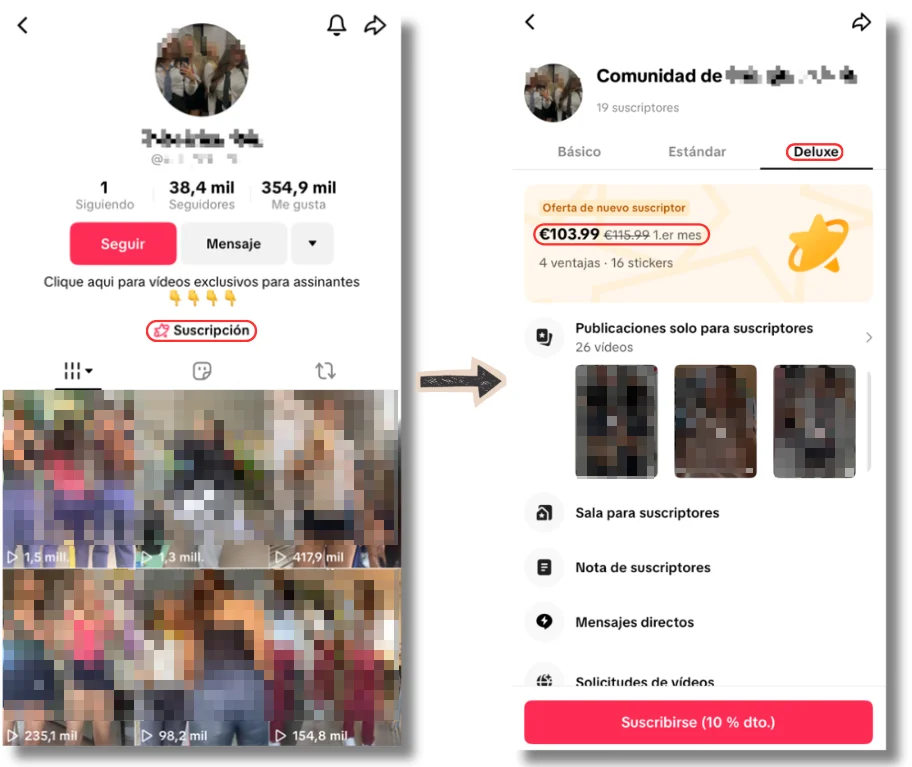 Contenido exclusivo a través del sistema de suscripción de TikTok, con el que la plataforma también obtiene beneficios
