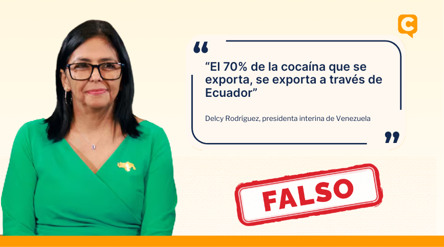 La presidenta de Venezuela, Delcy Rodríguez, aseguró públicamente que Ecuador es responsable del 70 % de la exportación mundial de cocaína y sugirió vínculos directos del Estado ecuatoriano con el narcotráfico.