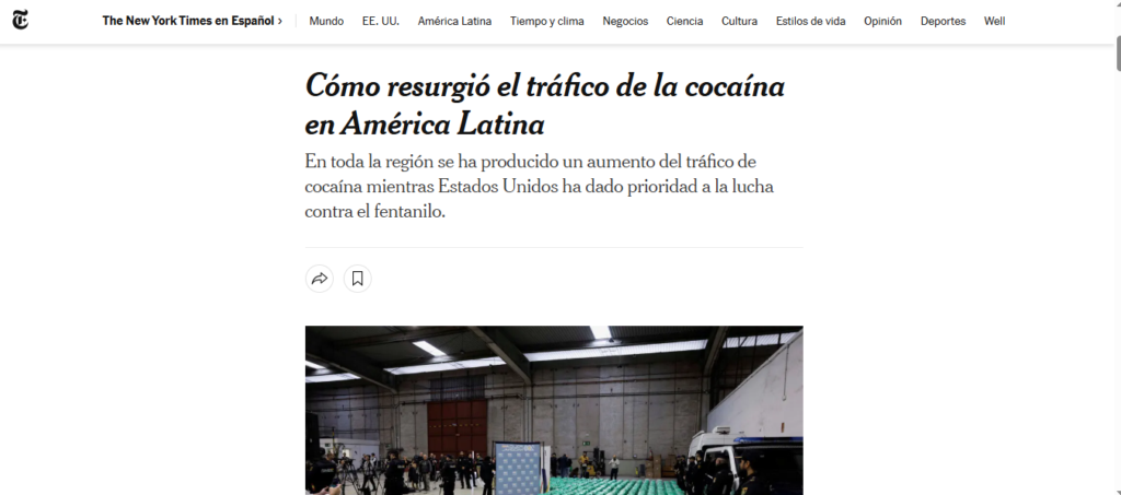 Sin embargo, el propio medio aclara que Ecuador no es un país productor y que su rol está ligado al tránsito, no a la generación del narcótico.