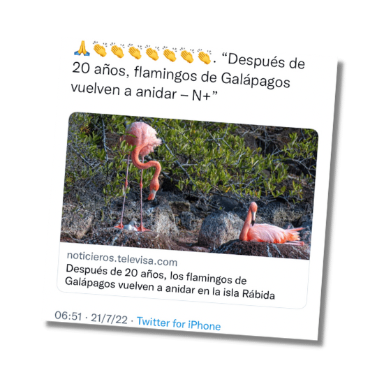 En Twitter circula una imagen en la que asegura que después de 20 años, flamingos de Galápagos vuelven a anidar, está información, queda dicho, es cierta.