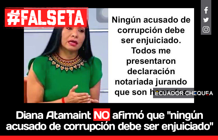 Lo atribuido a la funcionario nunca fue pronunciado por la misma. En el espacio Atamaint puntualizó que «si alguien le mintió al notario porque llevo originales para que sean certificadas eso debe trasladarse a Fiscalía porque perjurio es un delito, y eso no le corresponde a la autoridad electoral». El post engañoso utilizó una fotografía que utilizó el medio que transmitió la entrevista.