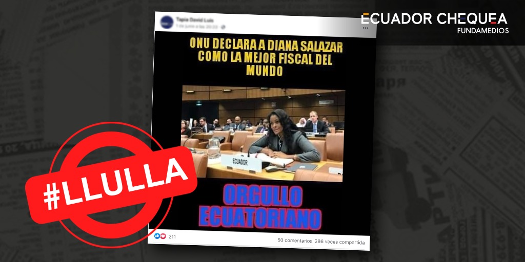 1 raymi killapimi, facebook pankapi shuk willayta llukchirka. Chaypimi nin ONU tantanakuyka Diana Salazarta “ashtawan alli huchachik” nishpami shutichirka nin. Chay willayka llullami kan, ONU tantanakuyka mana shina nirkachu.