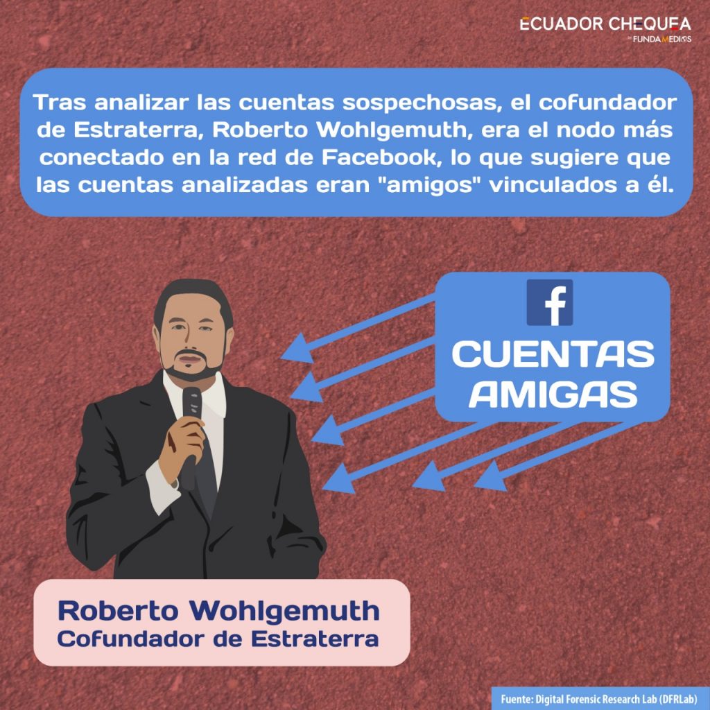 Facebook apuntó que entre los usuarios eliminados se cuentan: 77 páginas, 41 cuentas de usuario y 56 perfiles de Instagram atribuidos a Estraterra, una firma ecuatoriana de relaciones públicas, consultores políticos y exempleados del correísmo. “Parte de esas cuentas habían sido exfuncionarios del Gobierno durante el periodo de Rafael Correa”, detalló Ponce de León en entrevista con Convoca.pe el 10 de julio.