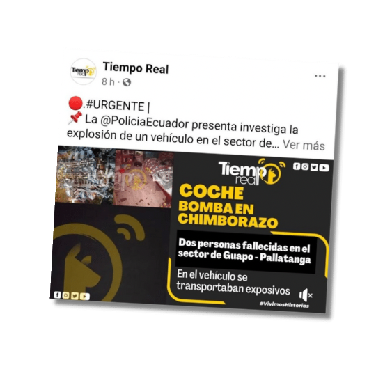 En la red social Facebook circula una imagen en la que se asegura que un coche bomba dejó dos fallecidos. Esta información es engañosa; si bien el hecho, lamentablemente se dio, no se ha confirmado que hubiera explosivos. Pudo haberse tratado de una falla mecánica.