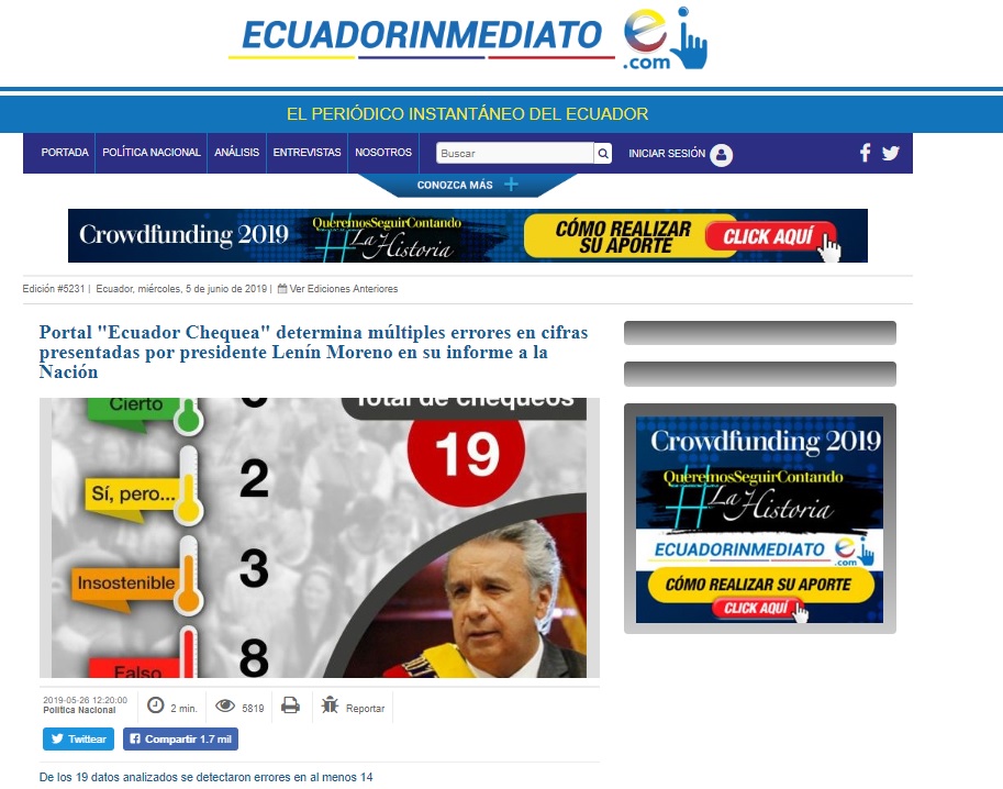 Portal «Ecuador Chequea» determina múltiples errores en cifras presentadas por presidente Lenín Moreno en su informe a la Nación