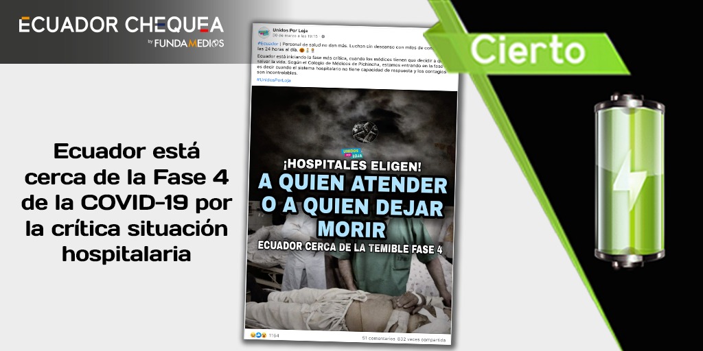 Autoridades y médicos han alertado del aumento de casos de la COVID-19 en Ecuador y de la escasez de camas hospitalarias a nivel nacional. En ese contexto, se viralizó desde el 30 de marzo, en Facebook, una publicación que indica que “Hospitales eligen a quién atender o a quien dejan morir. Ecuador cerca de la temible Fase 4”. La información es cierta.