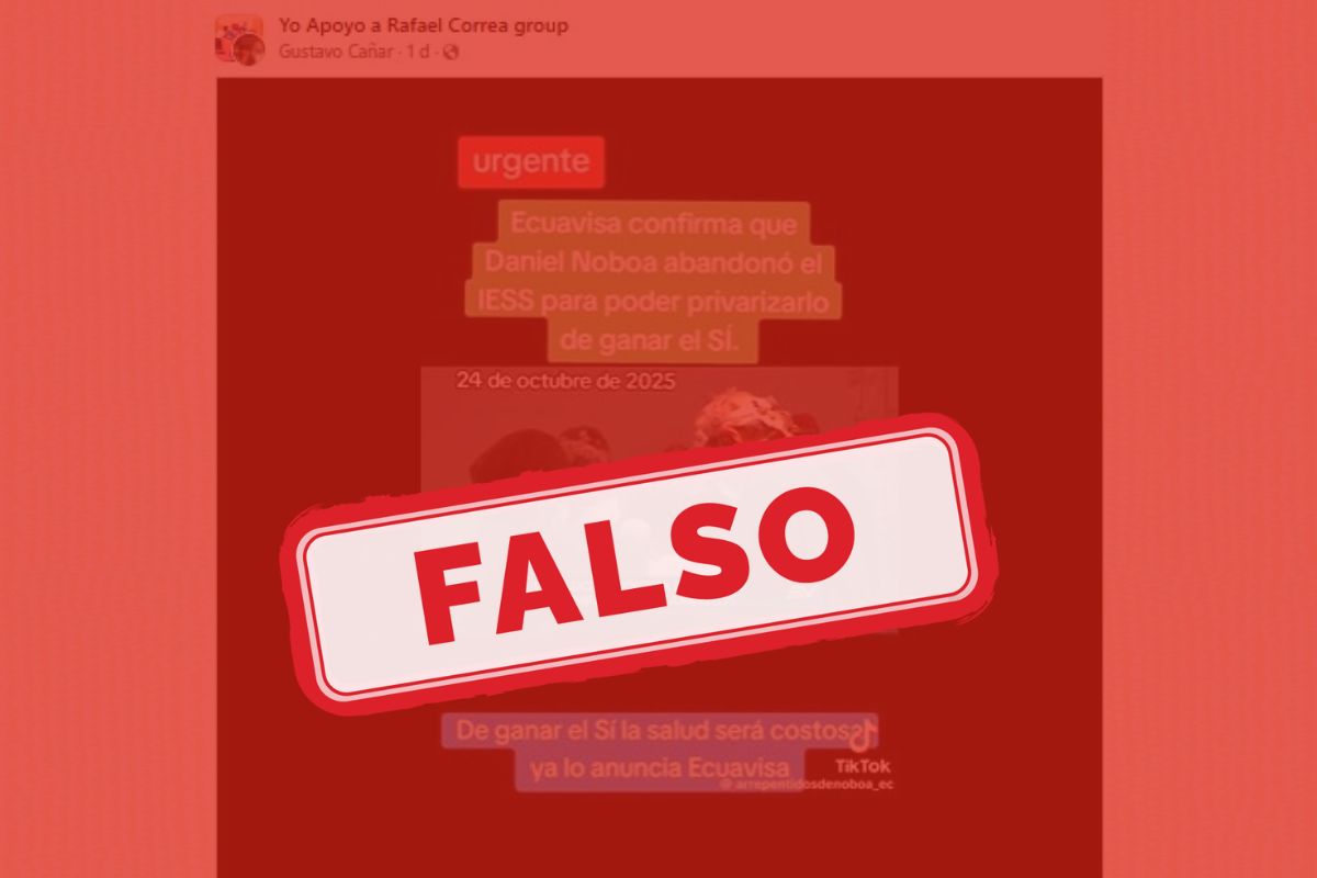 - Es FALSO. La publicación que circula en redes sociales altera un video auténtico de Ecuavisa y le añade un texto falso que asegura que el canal confirmó la privatización del IESS. En el reportaje original, Ecuavisa informó únicamente sobre la falta de medicamentos y los retrasos en cirugías dentro del sistema de salud del Seguro Social. Ninguna de las fuentes revisadas —ni el medio, ni el CNE, ni las declaraciones del presidente Noboa— menciona una privatización. La manipulación audiovisual busca generar alarma y desinformar a los usuarios digitales.