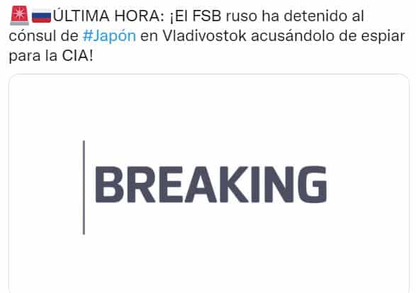 En Twitter, circula una publicación que menciona que el cónsul japonés, Motoki Tatsunori, fue detenido ayer por espionaje, en Vladivostok-Rusia, cerca de las fronteras con China y Corea del Norte. La información es cierta.