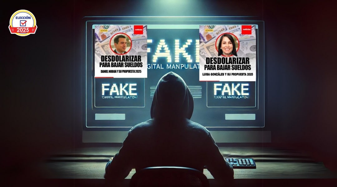 Ahora, con Noboa y González en la contienda, la estrategia se repite. A través de imágenes manipuladas, supuestos titulares de medios y publicaciones en redes sociales, se busca implantar la idea de que cualquiera de los dos candidatos que llegue al poder llevará a Ecuador a una nueva crisis económica. La estrategia consiste en cambiar el nombre del político en cuestión y difundir la desinformación en distintos espacios digitales, apostando a que algunos votantes la crean sin cuestionarla.