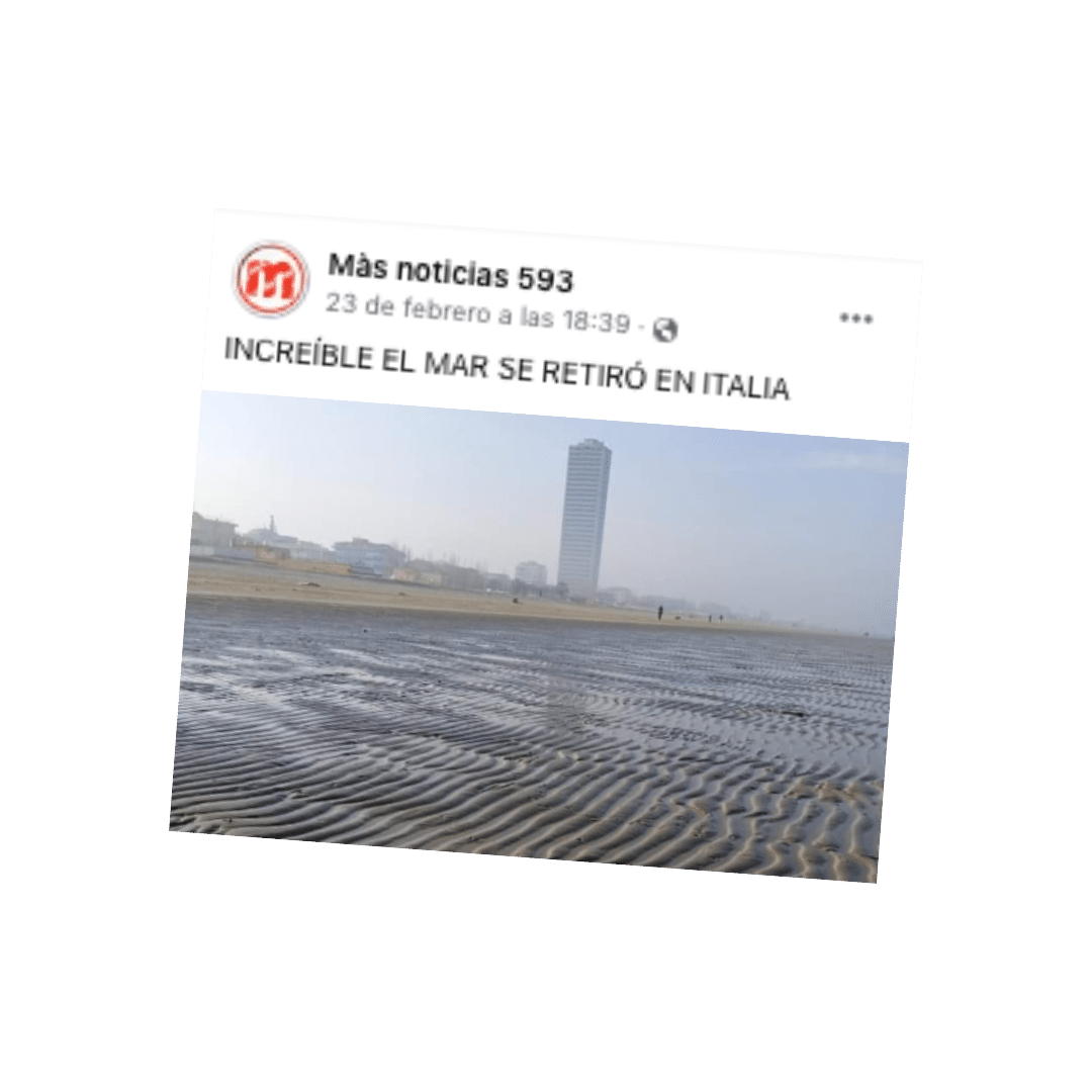 El 23 de febrero en Facebook se publicó un post que afirma: “el mar se ha retirado en Italia”. En la descripción de la publicación se menciona que se ha reportado este hecho y que ha ocurrido en otros países. Además, detallan que los ciudadanos estuvieron sorprendidos ante el hecho. Calificamos la información como cierta.