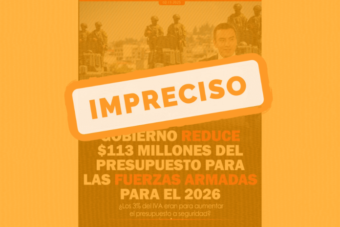 En TikTok, X (antes Twitter) y Facebook se difundió una publicación que asegura que el Gobierno ha reducido el presupuesto destinado a las Fuerzas Armadas en USD 113 millones para 2026.