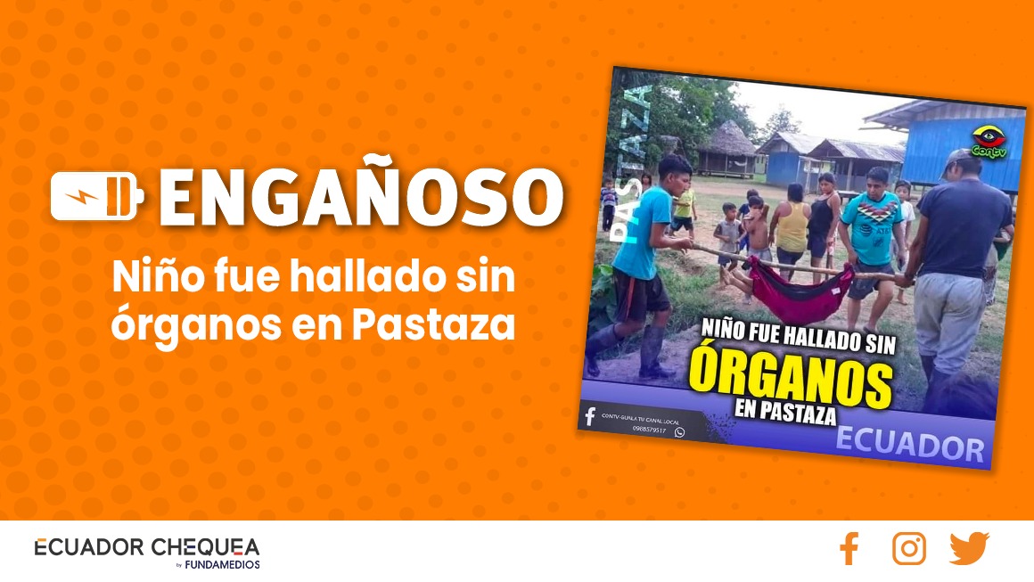 En medio de la crisis carcelaria y el crecimiento de los índices de criminalidad en las principales ciudades de Ecuador una de las formas de desinformar es reciclar noticias de impacto pasadas para hacerlas ver actuales. En ese contexto, se difundió en varias cuentas de Facebook desde el 17 de noviembre hasta el 20 de noviembre de 2021 un post que decía: ‘Niño fue hallado sin órganos en Pastaza’.