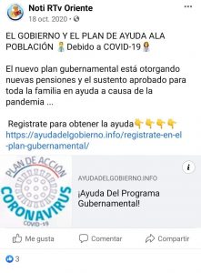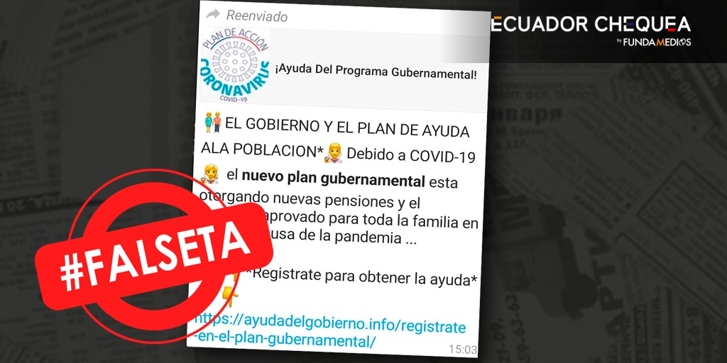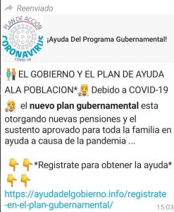 En redes sociales y WhatsApp circula una información que habla de un nuevo plan gubernamental, que otorga “pensiones y el sustento aprobado para toda la familia en ayuda a causa de la pandemia”. La información del registro para obtener ayuda es falsa. El logo que consta en dicha publicación proviene del plan de salud de Chile.