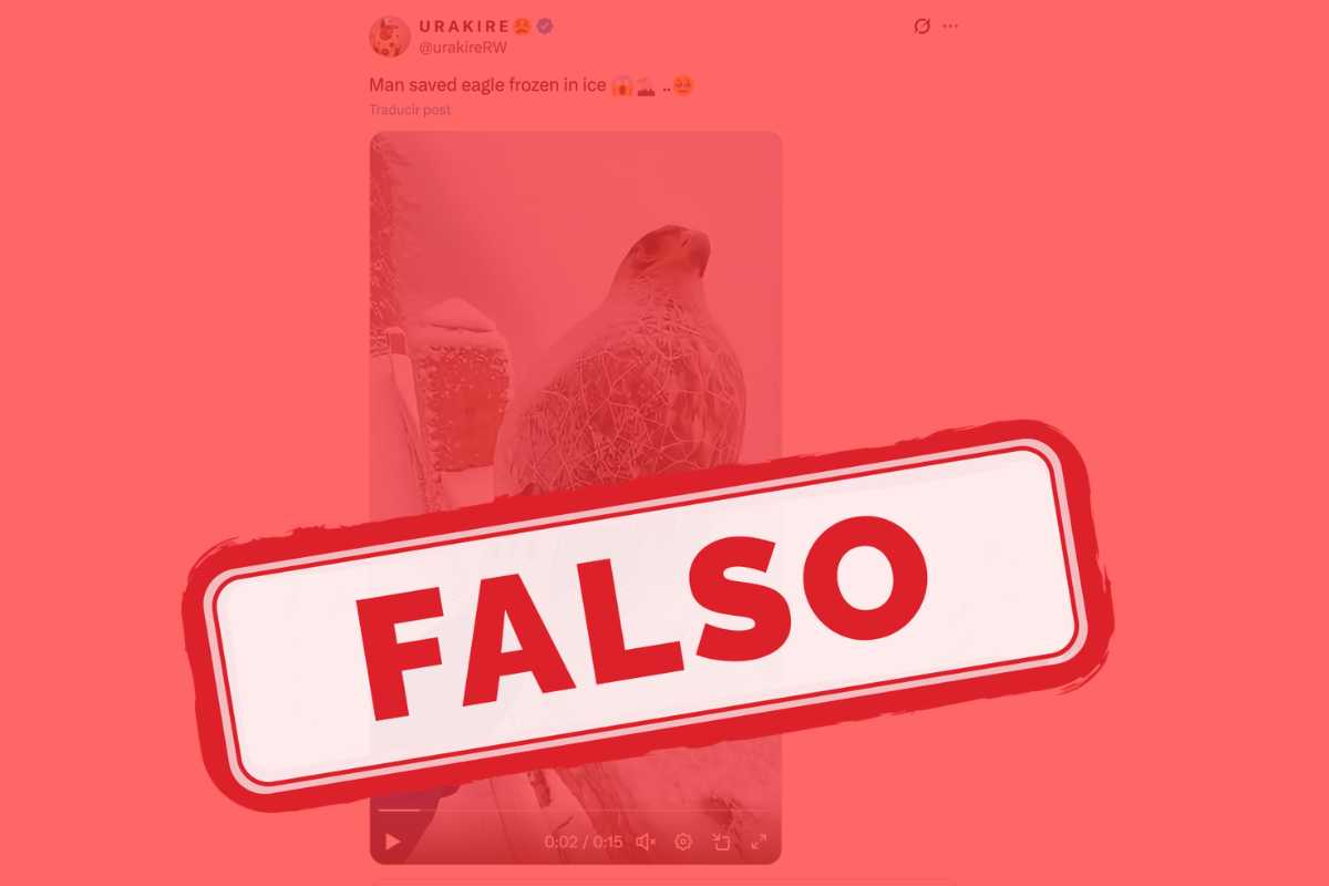 Un clip viral muestra a un hombre rompiendo hielo con un martillo para liberar a un águila supuestamente congelada. Sin embargo, el análisis técnico determinó que el video fue generado con IA y no existen registros verificables sobre su origen.