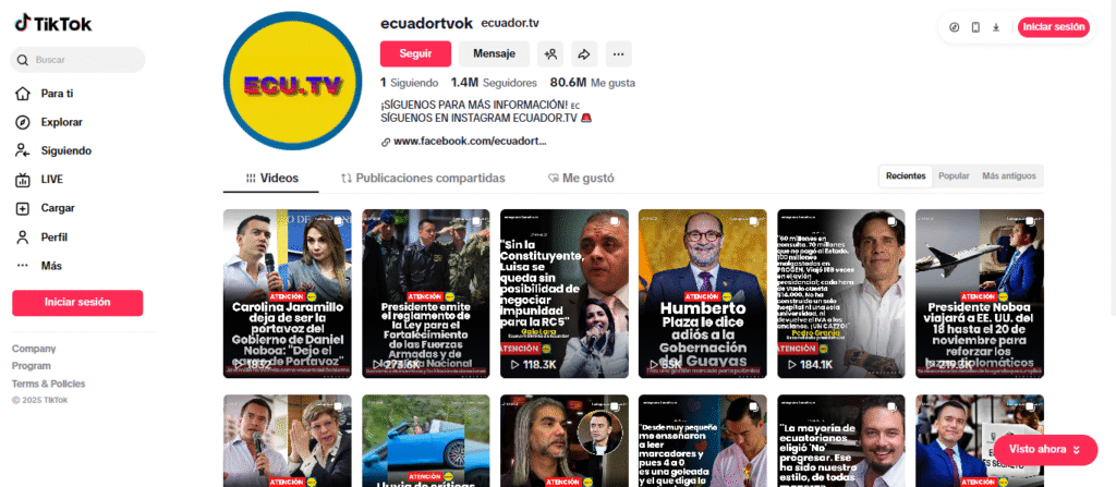 El contenido circuló en TikTok sin referencia a fecha, evento original ni contexto político de 2023. Lo hace pasar como actual y fue publicado por la cuenta denominada, @ecuadortvok, posicionada en esta red social.