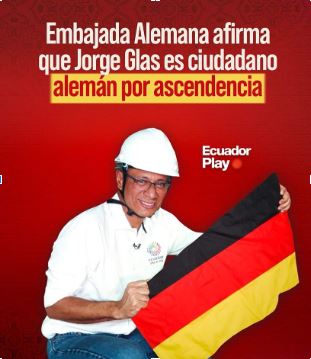 24 horas antes de que se iniciara la apelación del tan criticado hábeas corpus, la Embajada alemana en Ecuador, a través de su cuenta de Twitter, confirmó a la colectividad que “el señor Jorge Glas también tiene la nacionalidad alemana”, y aclaró que es por ascendencia