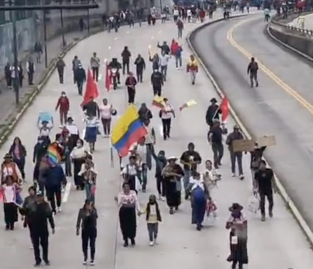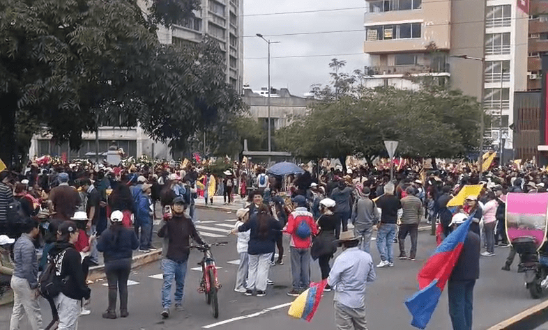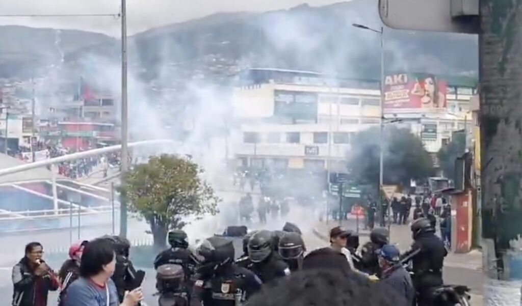 La Policía dispersó a cientos de manifestantes con el lanzamiento de bombas lacrimógenas en el parque El Ejido, en el centro-norte de Quito. Los manifestantes se habían concentrado en el lugar como parte de una movilización que avanzaba por la avenida Patria.